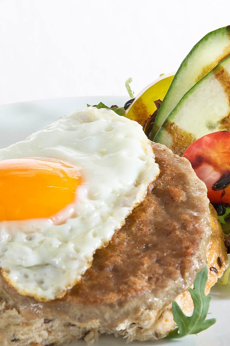 Vår hjemmelagde karbonade serveres på brød med smør, karbonade og speilegg. Serveres med salat. Velg hvilken brødtype du ønsker.